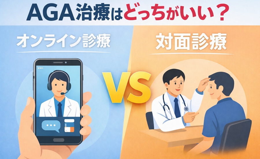 AGA(男性型脱毛症)の治療を考え始めたとき、多くの人が迷うのが「オンライン診療」と「対面診療」のどちらを選ぶべきかという点です。最近はスマートフォンから気軽に診察を受けられるオンライン診療も増え、通院せずに治療を始められる選択肢が広がっています。
